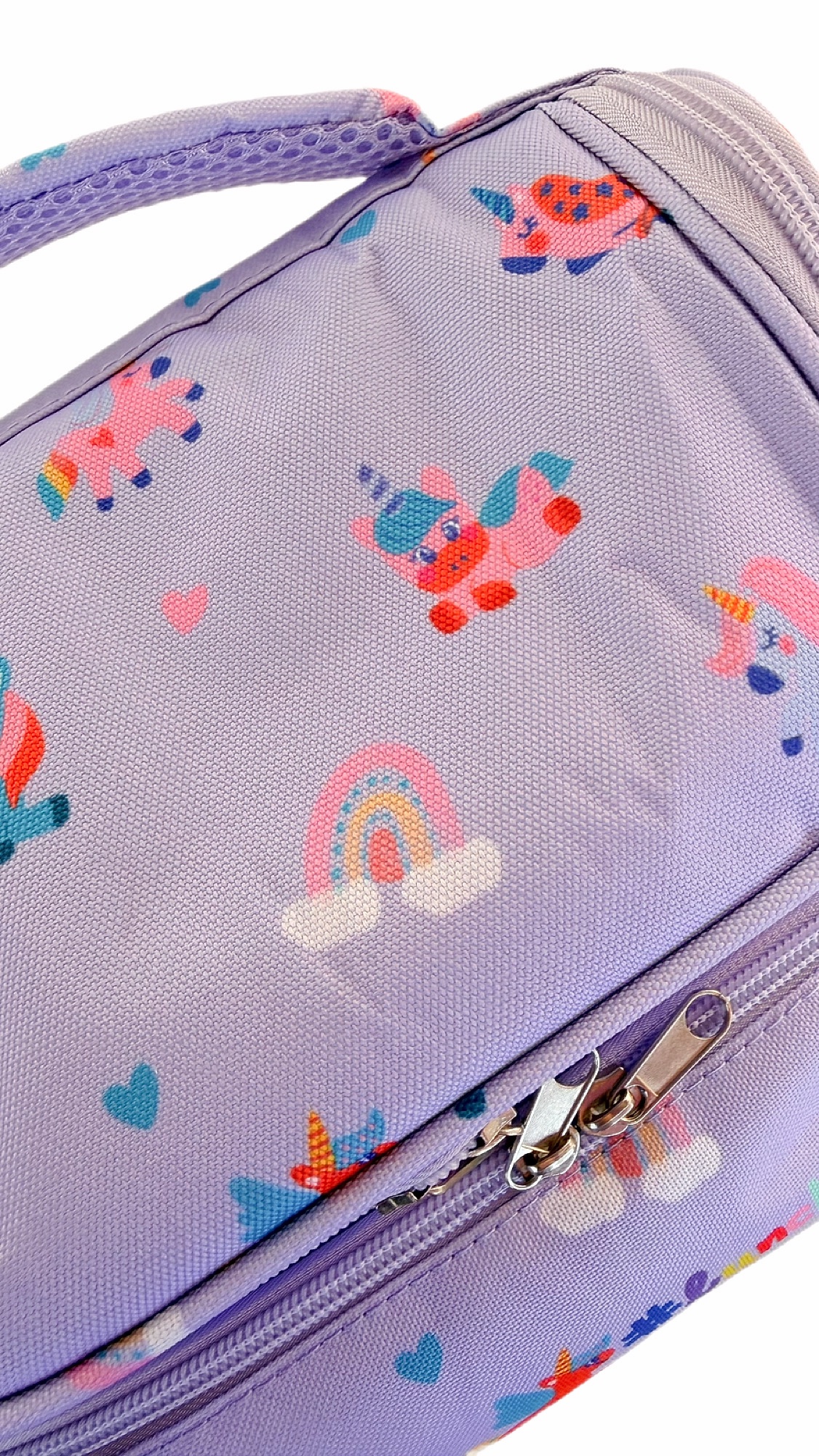 Η Snack Adventure Bag – Dreamland Edition μετατρέπει την ώρα του φαγητού σε μια μικρή μαγική περιπέτεια. Με παιχνιδιάρικα σχέδια από μονόκερους, ουράνια τόξα και χαρούμενα χρώματα, είναι η ιδανική τσάντα για το σχολείο, τη βόλτα ή κάθε μικρή εξερεύνηση της ημέρας.