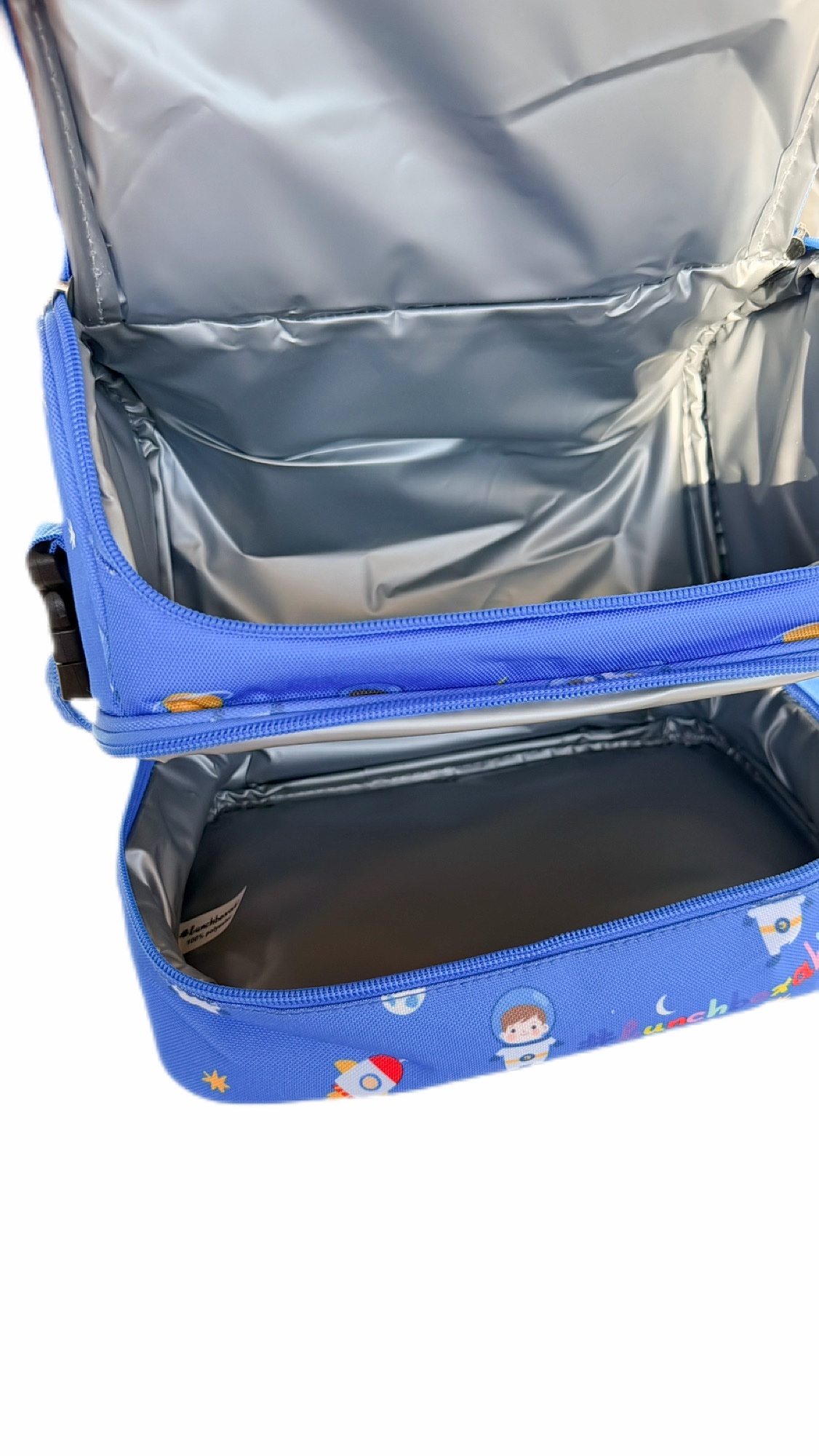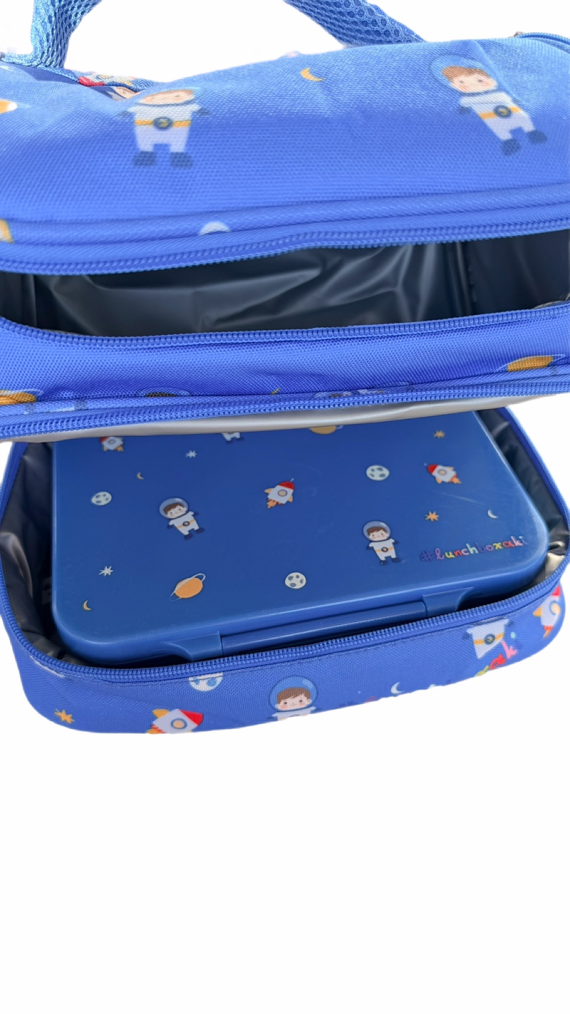 Η θερμομονωτική επένδυση βοηθά να διατηρούνται τα σνακ φρέσκα, ενώ ο πρακτικός σχεδιασμός της είναι ειδικά μελετημένος ώστε να χωράει τέλεια το αγαπημένο #lunchboxaki, δημιουργώντας το απόλυτο matching σετ για κάθε μικρό εξερευνητή του διαστήματος.